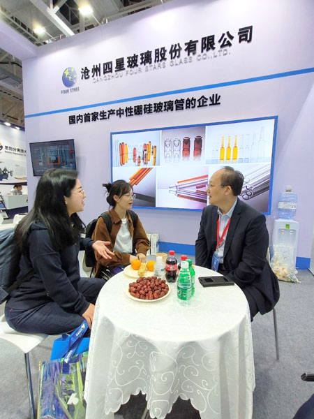 本次展會上,我公司作為國產藥包材生產供應商備受關注,公司董事長、副總經理在公司展位與到訪領導、各界嘉賓及合作伙伴深入交流。